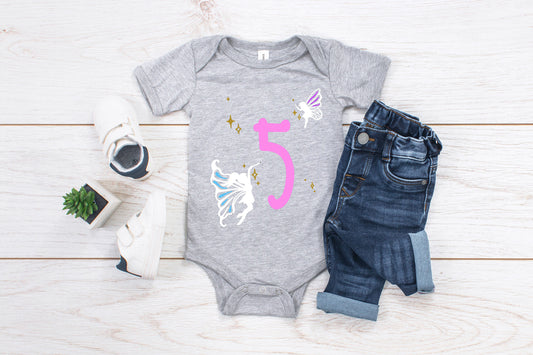 Kid's/ Baby "(Insert Age)" Fairy Birthday T-Shirt/ Romper