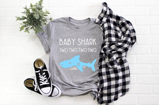 Kid's "Baby Shark Two Two Two Two" 2nd Birthday T-Shirt