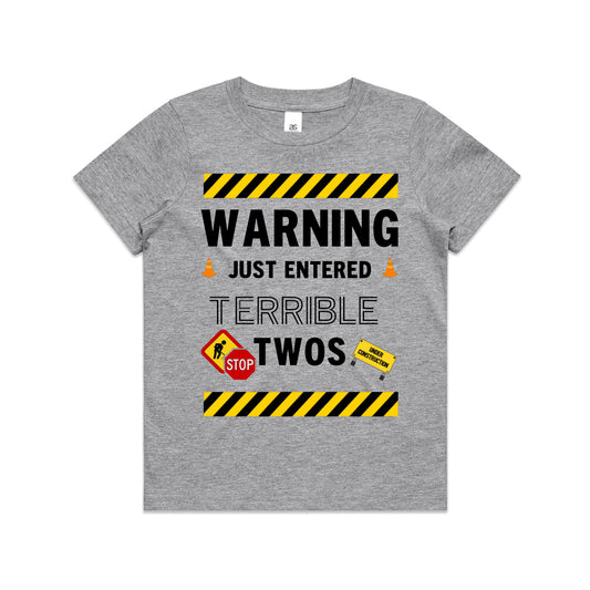 Kid's "Warning Just Entered Terrible Twos" 2nd Birthday T-Shirt