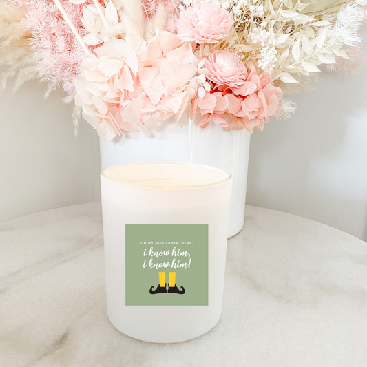 Hand poured 100% Natural Soy Christmas Candle | Elf Oh My God Santa, Here? I Know Him, I Know Him! | Medium Candle