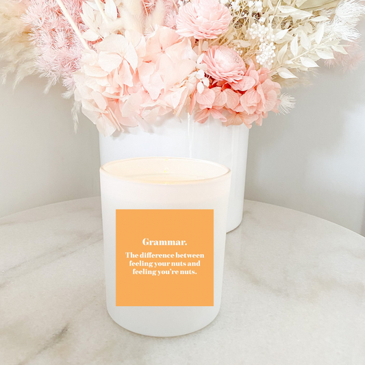 Hand poured 100% Natural Soy English Teacher Candle | Grammar. The difference between feeling your nuts and feeling you're nuts. | Medium Candle