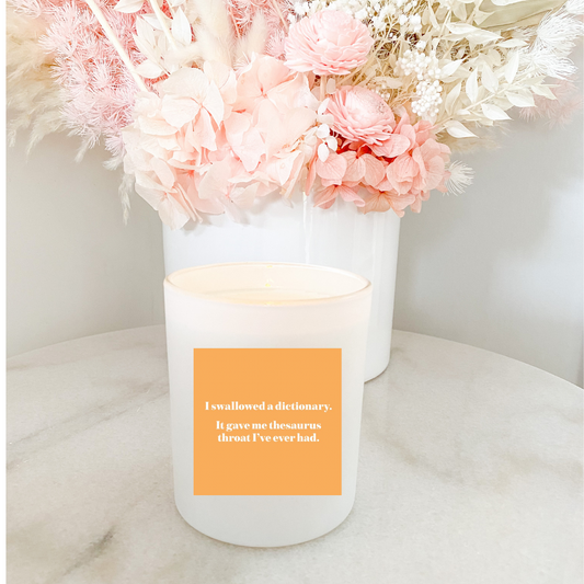 Hand poured 100% Natural Soy English Teacher Candle | I Swallowed a Dictionary. It Gave me thesaurus throat I've ever had. | Medium Candle